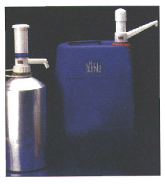Dosatori manuali da applicare sulle imboccature di bottiglioni e fusti, per dosaggi e travasi di liquidi anche viscosi.