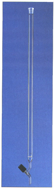 Colonna in vetro borosilicato. Cono superiore a smerigliatura normalizzata (SN 14/23), setto poroso (porosità 0). Valvola a spillo per regolazione fine del flusso di liquido. Capacità ca ml 150.