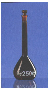 Matracci tarati in vetro borosilicato Duran, Classe A secondo DIN 12 664 T1. Consentono di filtrare la luce ultravioletta e visibile sotto i 500 nm. Calibrati a contenere "In", anello di taratura e iscrizioni in colore bianco.