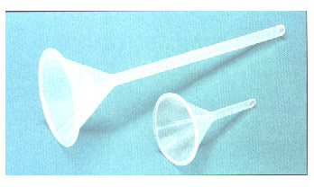 Imbuti per analisi. Corpo con pareti inclinate a 60°, munite di scanalature. Nei modelli a gambo lungo, questo si riempie di liquido filtrato creando sotto il filtro una depressione che rende più veloce la filtrazione.
