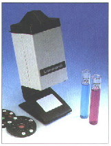Dispositivo che permette, fissando il comparatore alla base, di utilizzare tubi Nessler da mm 113 di altezza e ml 50 di capacità. Codice 0871.72030